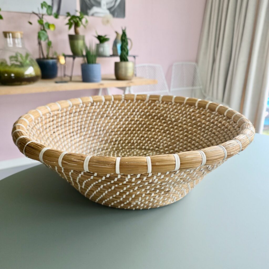 Een handgemaakte schaal laat vakmanschap zien. Deze handgevlochten rieten schaal is daar een duidelijk voorbeeld van. Wie zoekt naar een natuurlijke schaal met karakter, komt vaak bij dit type object uit. De combinatie van formaat, materiaal en afwerking maakt deze schaal herkenbaar en geliefd.