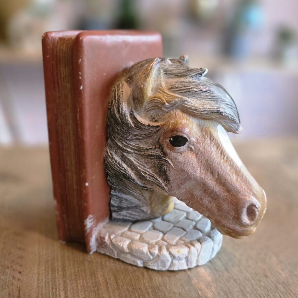 Set boekensteunen met paardenhoofden in landelijke stijl