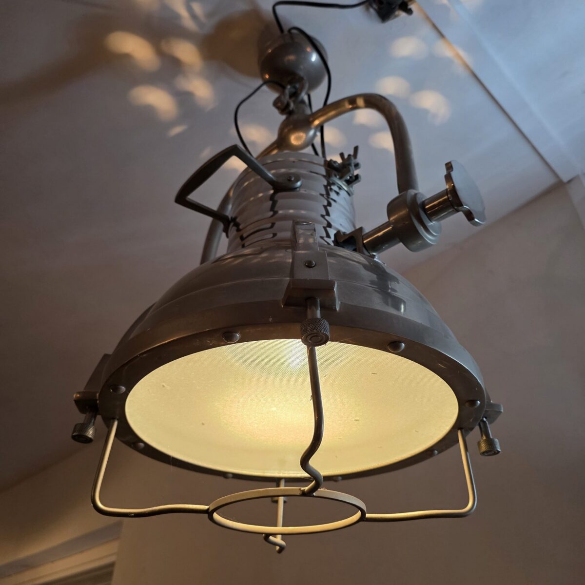 Stoere metalen machinekamer hanglamp in gebruik