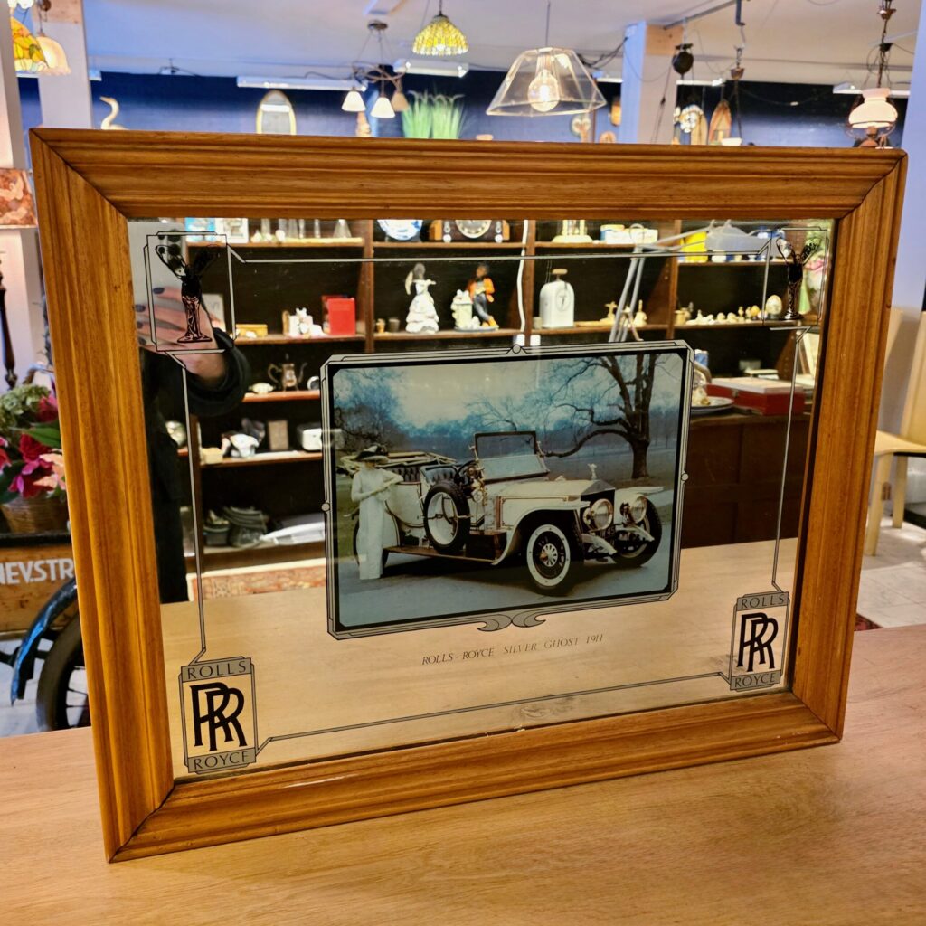 De vintage Rolls-Royce Silver Ghost 1911 spiegel in houten lijst is een decoratief wandobject met een rijk verleden. Deze spiegel combineert spiegelglas met een historische automobielafbeelding van de iconische Rolls-Royce Silver Ghost uit 1911. Daardoor ontstaat een object dat niet alleen functioneel is, maar ook sfeer en karakter toevoegt aan het interieur. Bovendien spreekt deze spiegel liefhebbers aan van klassieke auto’s, vintage woonstijlen en bijzondere wanddecoratie.